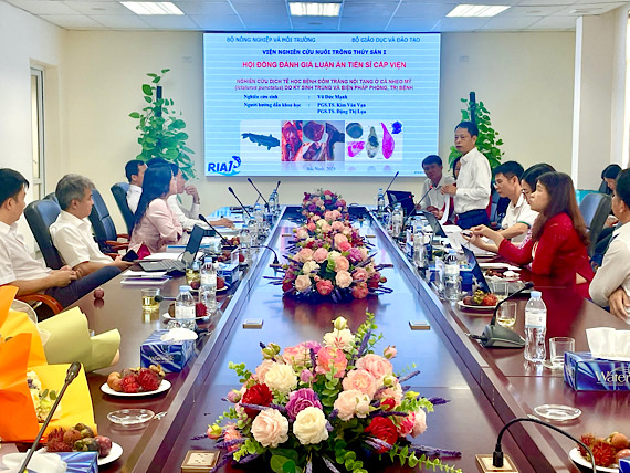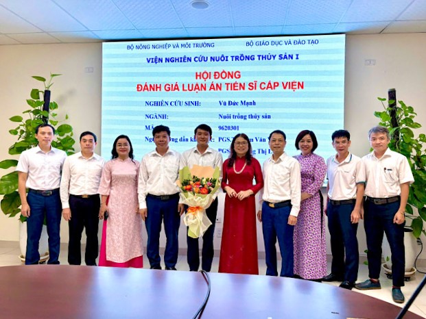 Ngày 29/06/2025 Viện Nghiên cứu Nuôi trồng thủy sản I đã tổ chức Hội đồng đánh giá Luận án Tiến sĩ cấp Viện cho Nghiên cứu sinh Vũ Đức Mạnh với luận án “Nghiên cứu dịch tễ học bệnh đốm trắng nội tạng ở cá Nheo Mỹ (Ictalurus punctatus) do ký sinh trùng và biện pháp phòng, trị bệnh” - Ngành Nuôi trồng thủy sản - Mã số: 9620301.